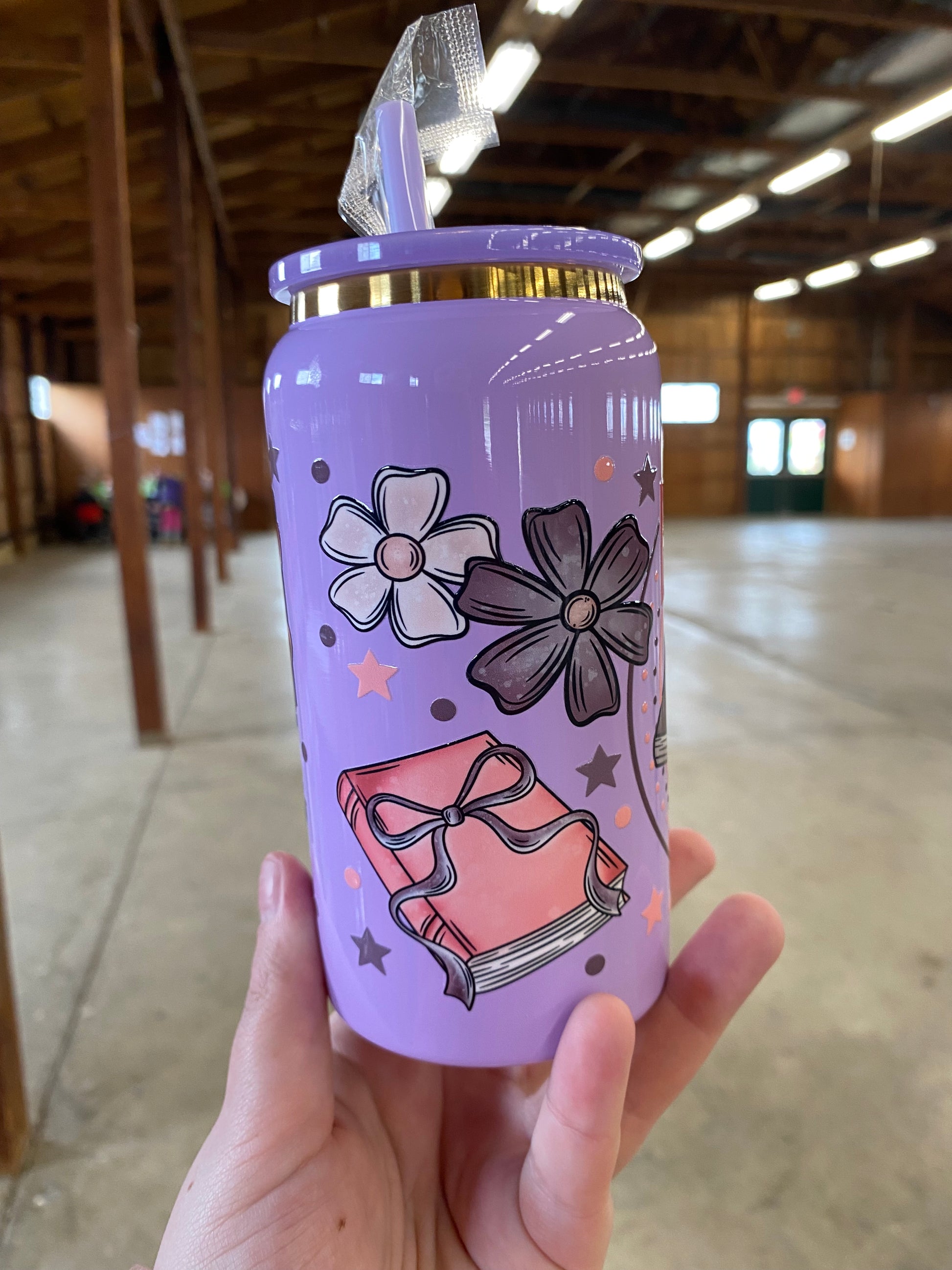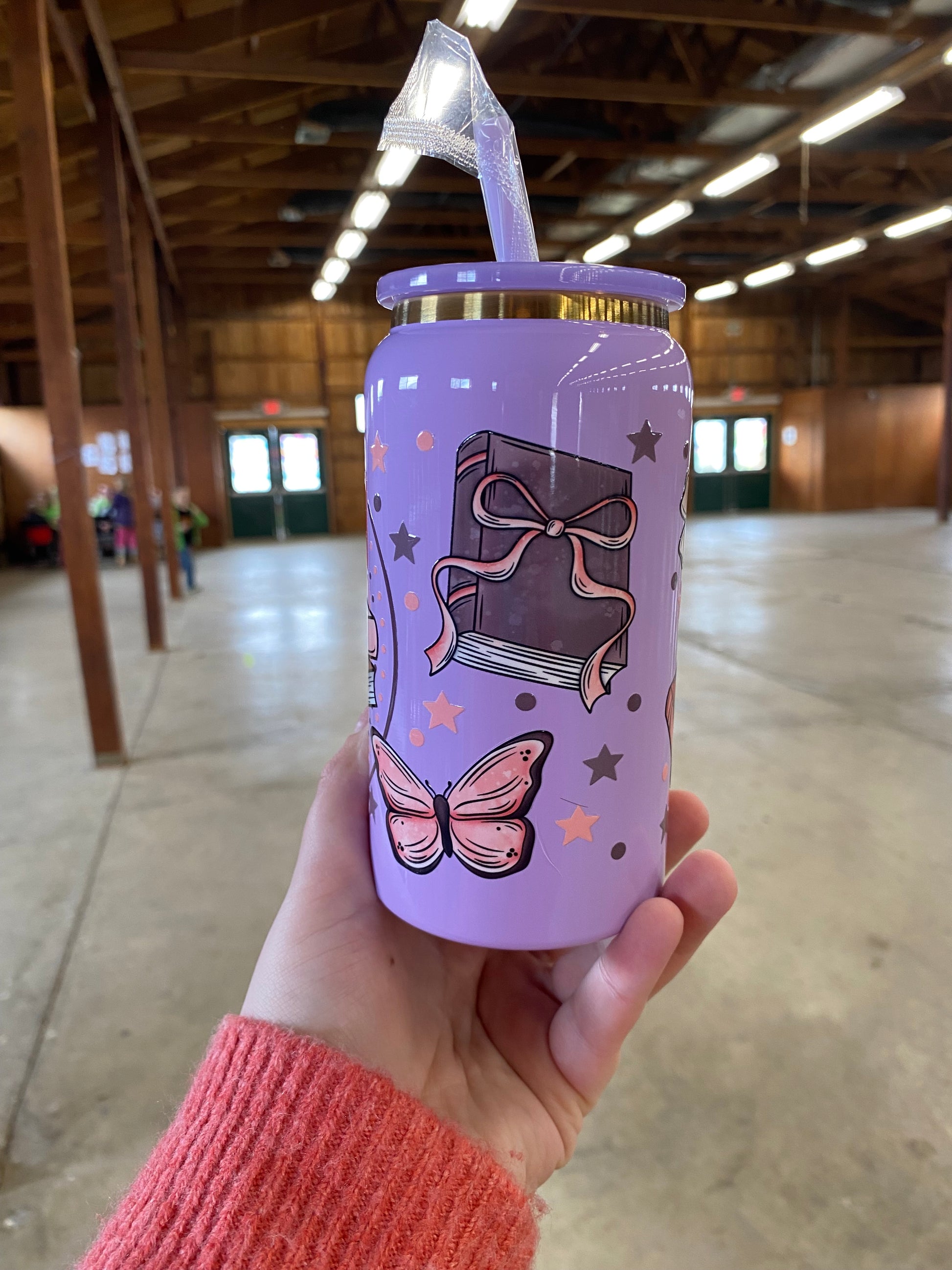 16 oz stainless steel cup. Comes with matching lid and straw. Hand wash only! Good for hot and cold beverages