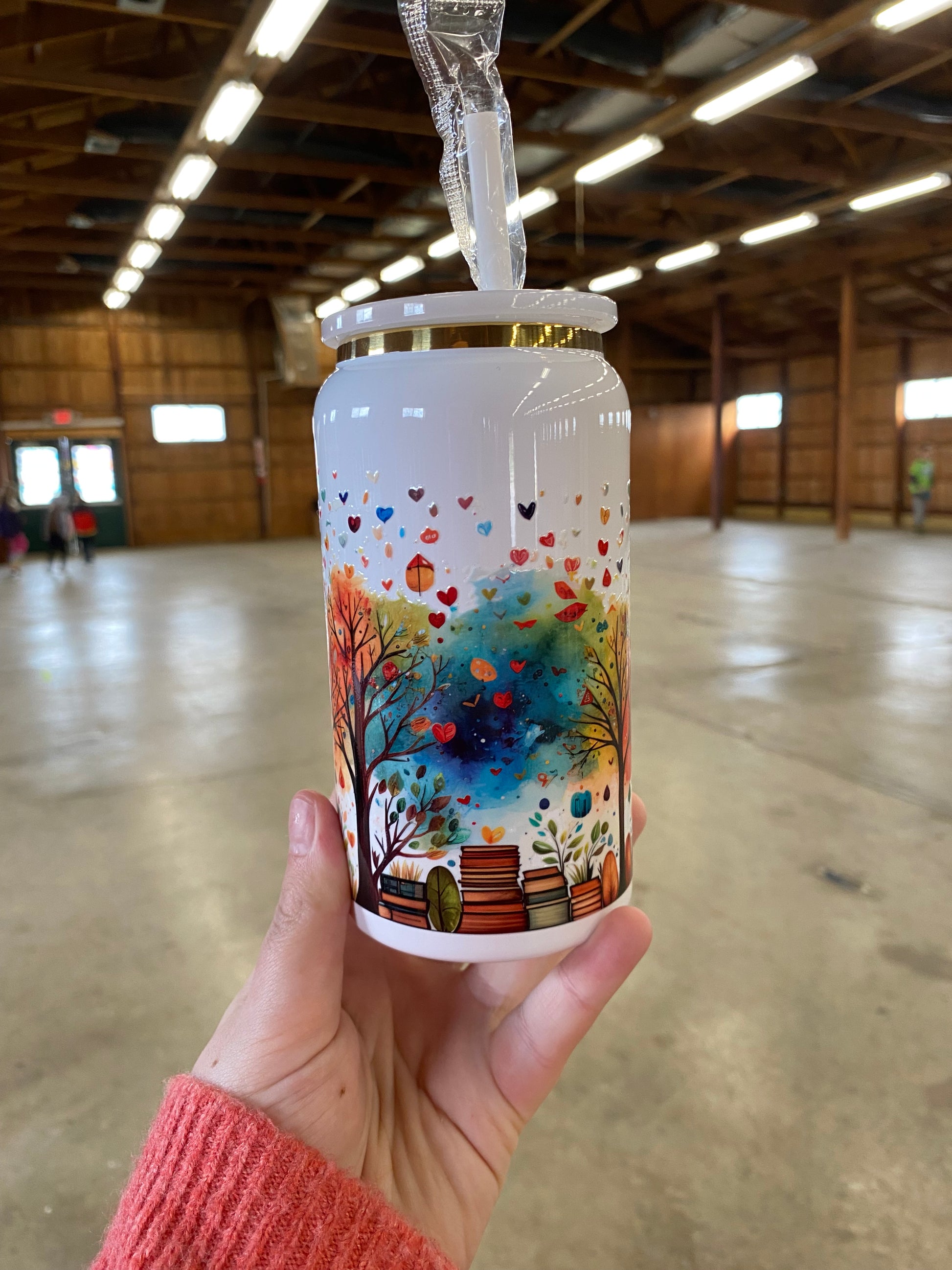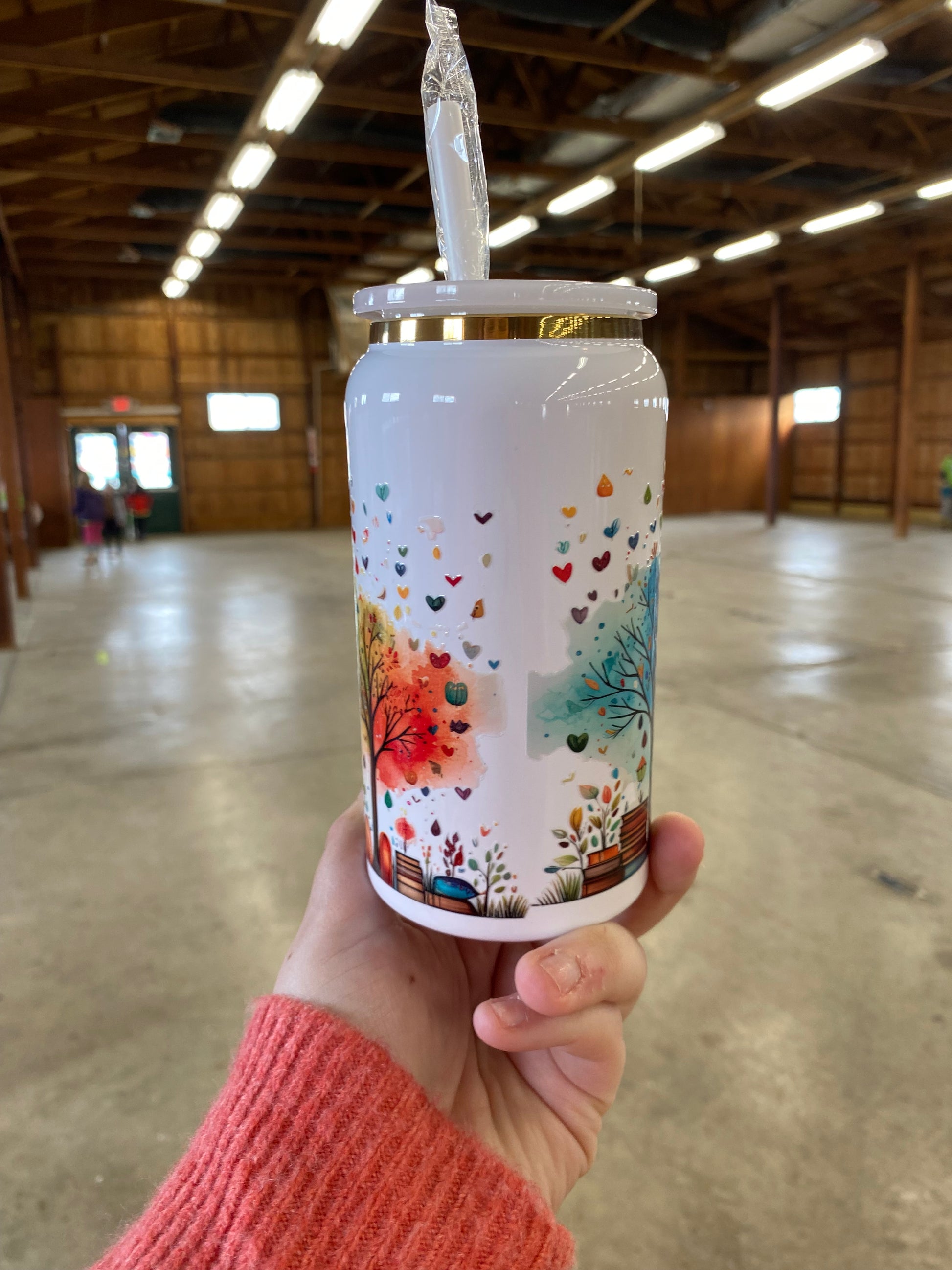 16 oz stainless steel cup. Comes with matching lid and straw. Hand wash only! Good for hot and cold beverages