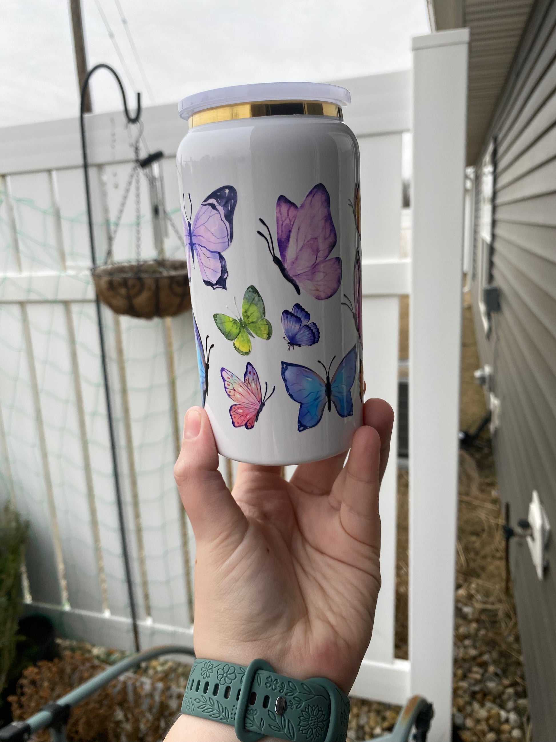 16 oz stainless steel cup. Comes with matching lid and straw. Hand wash only! Good for hot and cold beverages