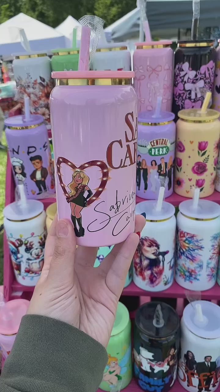 16 oz stainless steel cup. Comes with matching lid and straw. Hand wash only! Good for hot and cold beverages