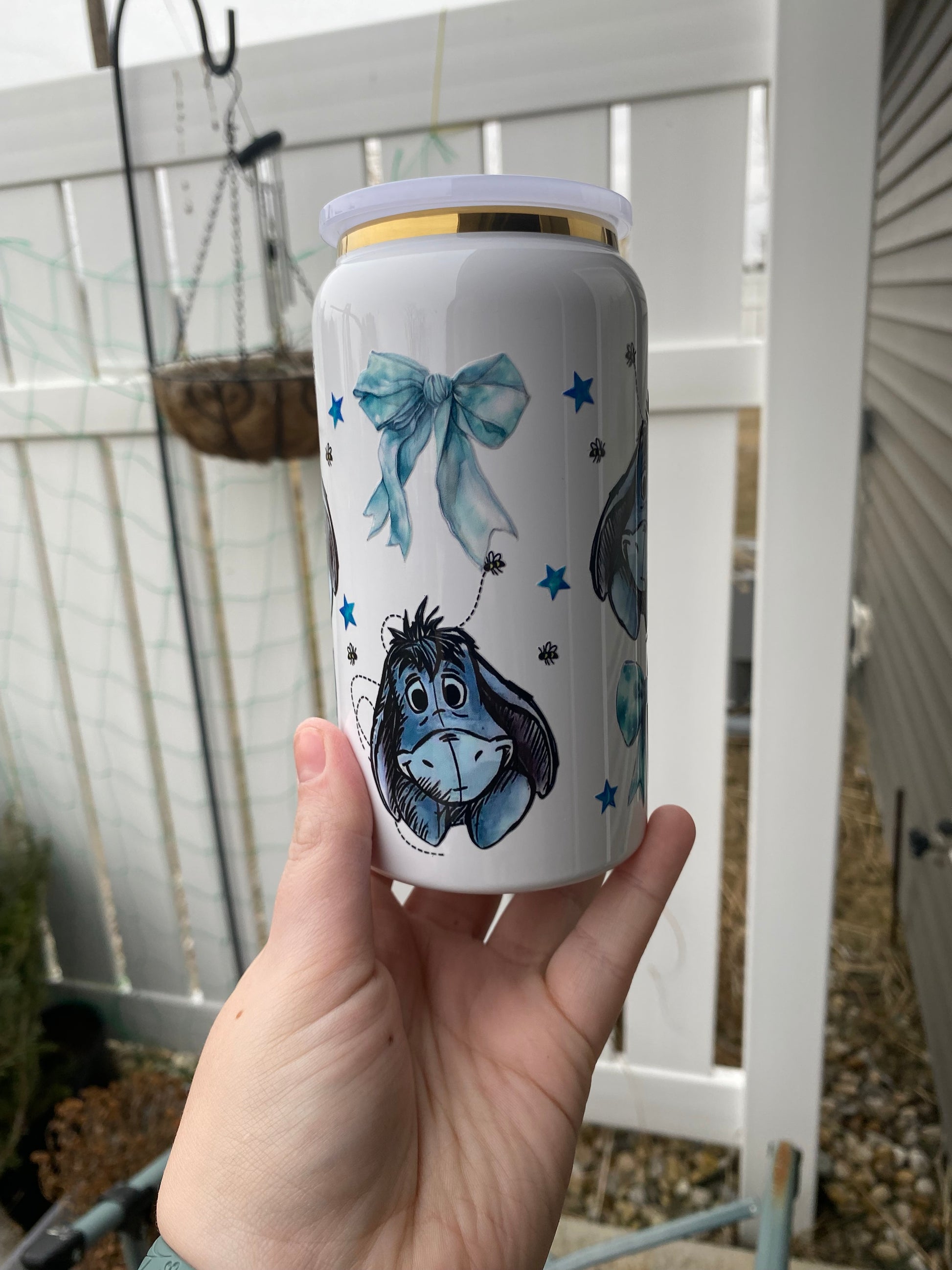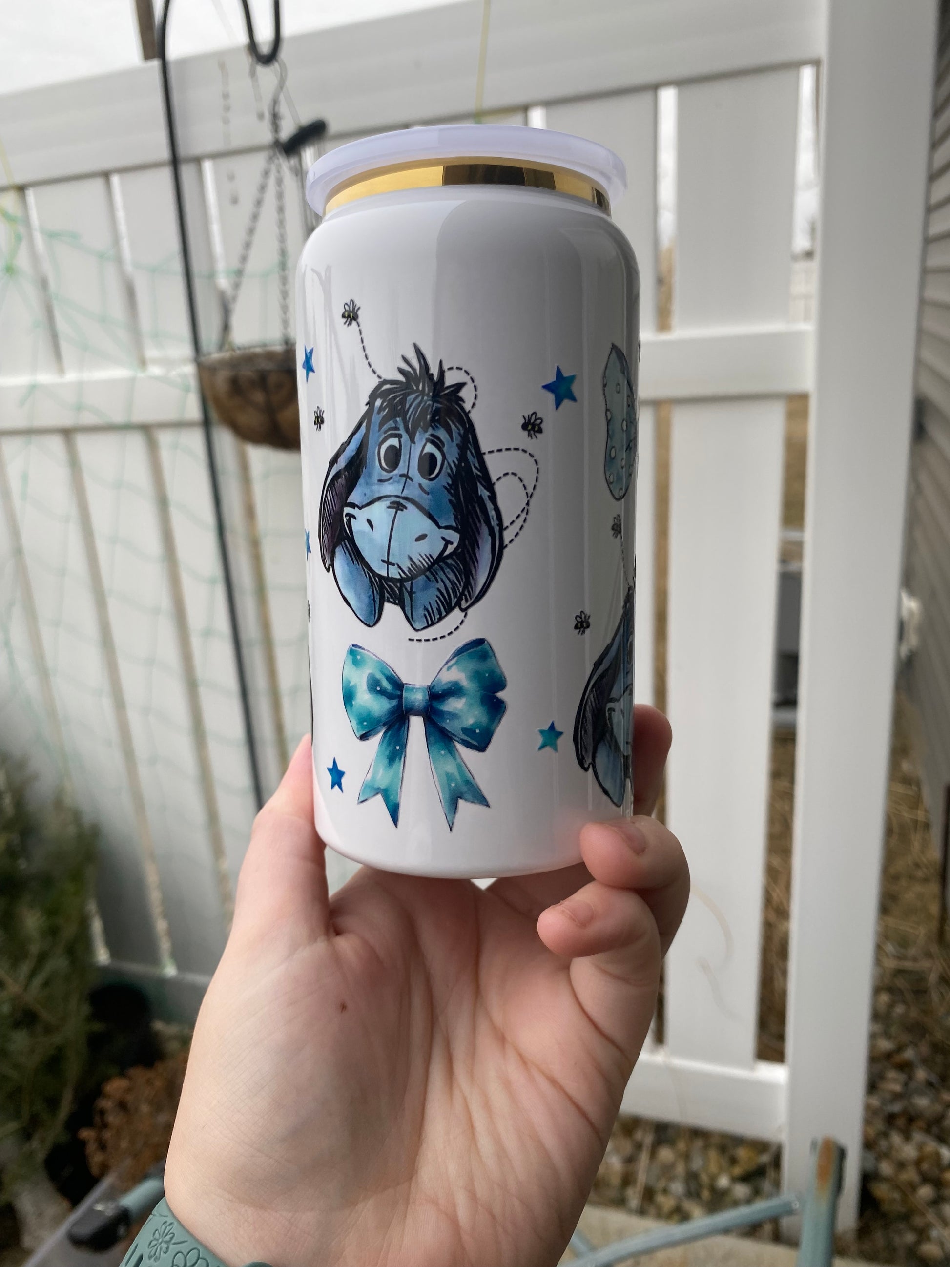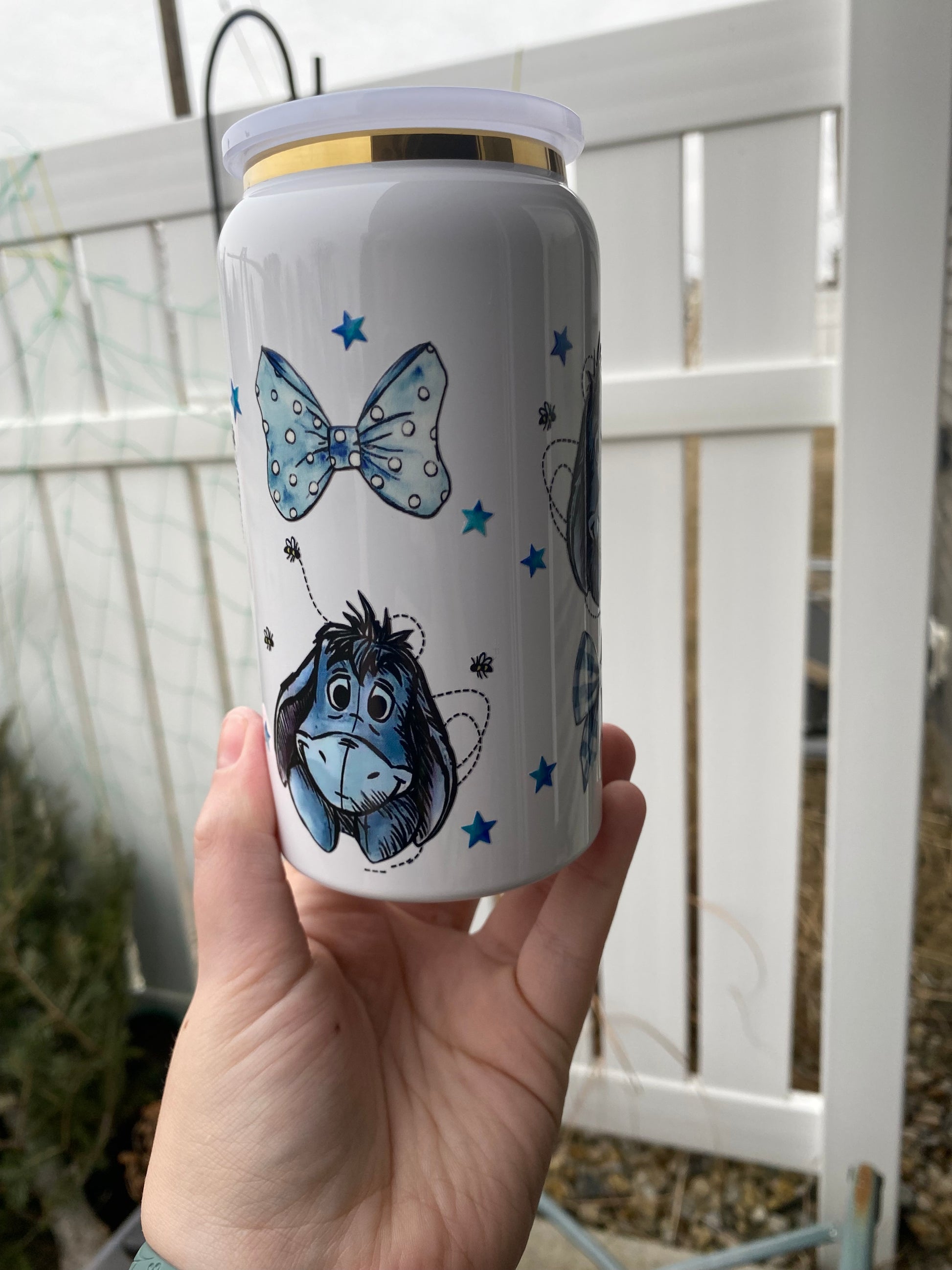 16 oz stainless steel cup. Comes with matching lid and straw. Hand wash only! Good for hot and cold beverages