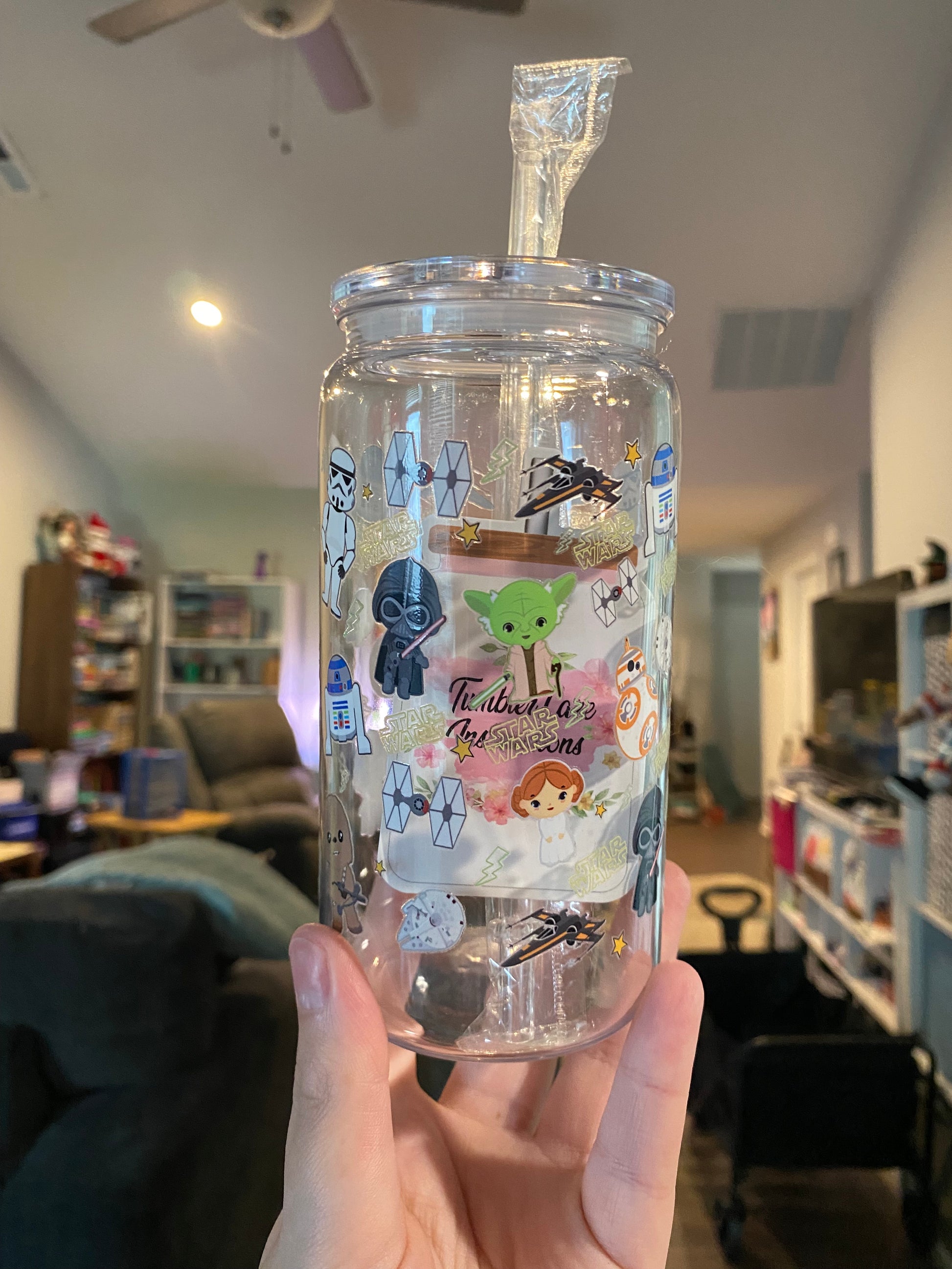 Lids and straw included. 16 oz plastic acrylic Libbey Glasses. These cups are hand wash only! Made for cold beverages. All cups are handmade with permanent vinyl or UVDTF. Cups do come with lid and straw.